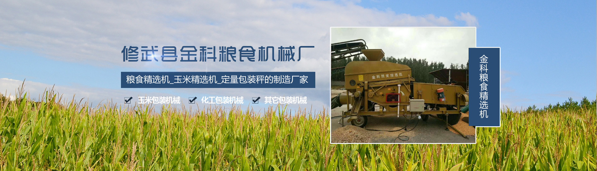 / ABOUT US查看更多+修武縣金科糧食機(jī)械廠,研制開發(fā)了多種系列糧食精選機(jī),電子秤,包裝秤,分裝機(jī),玉米脫粒機(jī),脫粒機(jī)輸送機(jī),皮帶機(jī),除塵器,脈沖除塵器,提升機(jī),絞龍,糧食上料機(jī)等糧食機(jī)械。,在使用中得到各地用戶的一致好評(píng)! 另外專注生產(chǎn)的計(jì)量包裝秤,產(chǎn)品主要應(yīng)用于玉米包裝機(jī)械,化工包裝機(jī)械,以及其它包裝機(jī)械。產(chǎn)品銷往玉米加工廠家,面粉加工廠家,化肥廠家等。